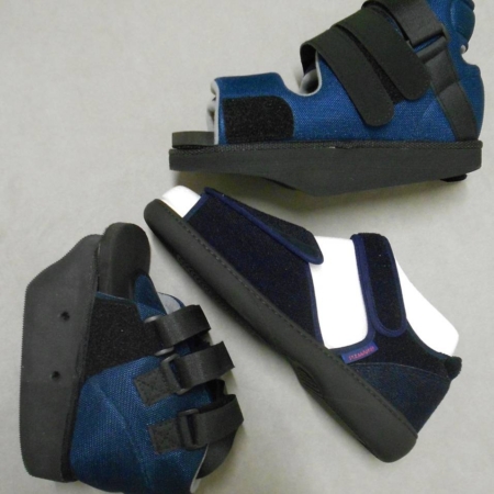 Es han­delt sich hier um Schu­he mit Son­der­funk­tio­nen, meist ein­ge­setzt zur Ruhig­stel­lung und Ent­las­tung ein­zel­ner Fuß-Zonen nach Ver­let­zun­gen oder Ope­ra­tio­nen. Die Schu­he haben varia­ble Ver­schluss-Sys­te­me, viel Platz — gege­be­nen­falls auch für Ver­bän­de — und sie sind größ­ten­teils wasch­ma­schi­nen­fest.